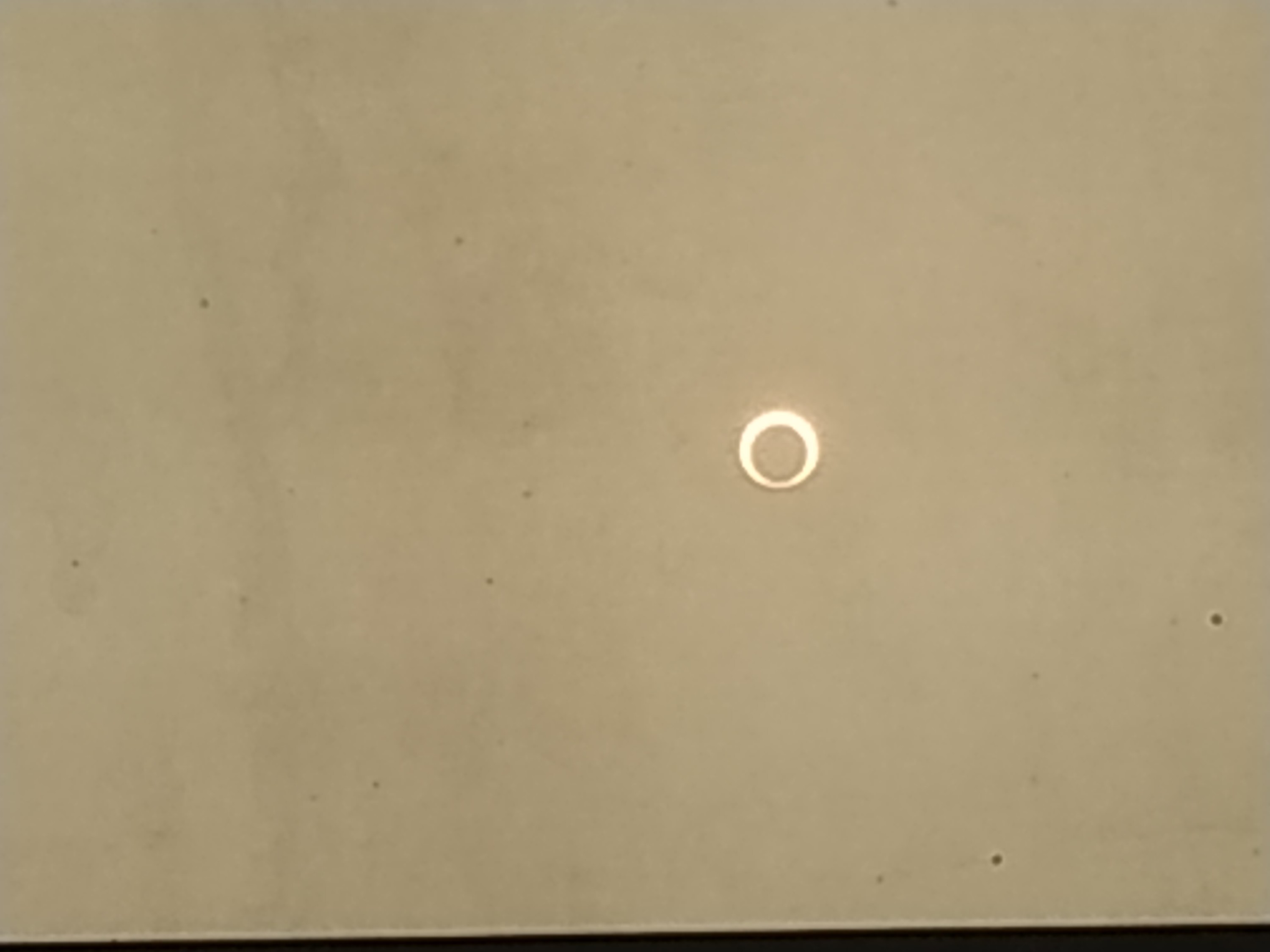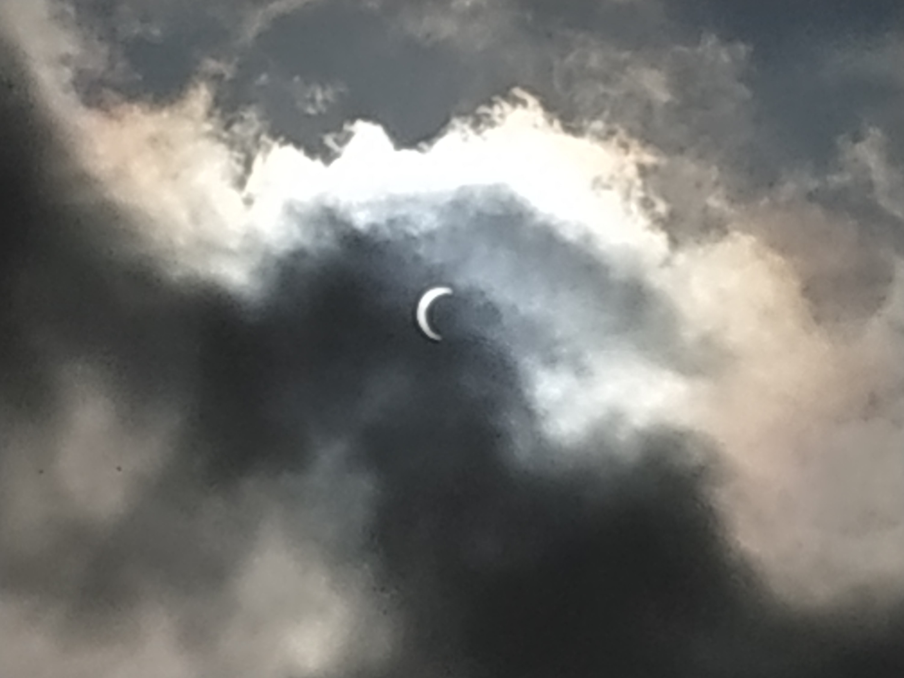 I saw a McDonald’s and thought I’d stop in for a coffee. As I stood outside I looked up to the sky through the glass awning and to my surprise I could see the sun with the shadow of the moon crossing it as clear as day. With my polarised specs I could see it perfectly. The awning seemed to be filtering out the glare and so you could look at it comfortably without having to squint. The pictures that I have here were taken on my phone but I took a few on my camera but I haven’t got my computer with me so I can’t download them yet.