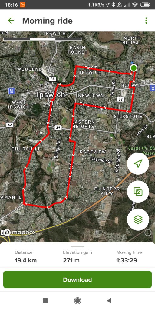 The tyres only had 20 psi, very low and so I got them up to 55 psi before heading off. I was staying around Ipswich today and really I was only guided by the quiet roads and I wanted to hit a few hills and there are plenty in Ipswich.