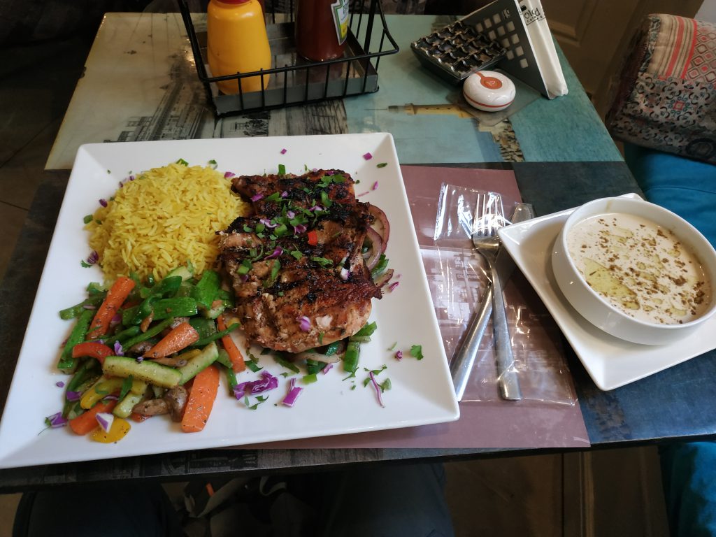 I found my earplugs and came back to the hotel to try and catch up on sleep, I’m dog tired. I got up at about 3:30 pm and thought I’d better eat so I went to a restaurant across the road and ordered this rather large chicken breast and then proceeded to remove all the skin but it was still tasty. I never eat the skin of a chicken. This cost around $10 Aud and was definitely better than the street food I had the other day.