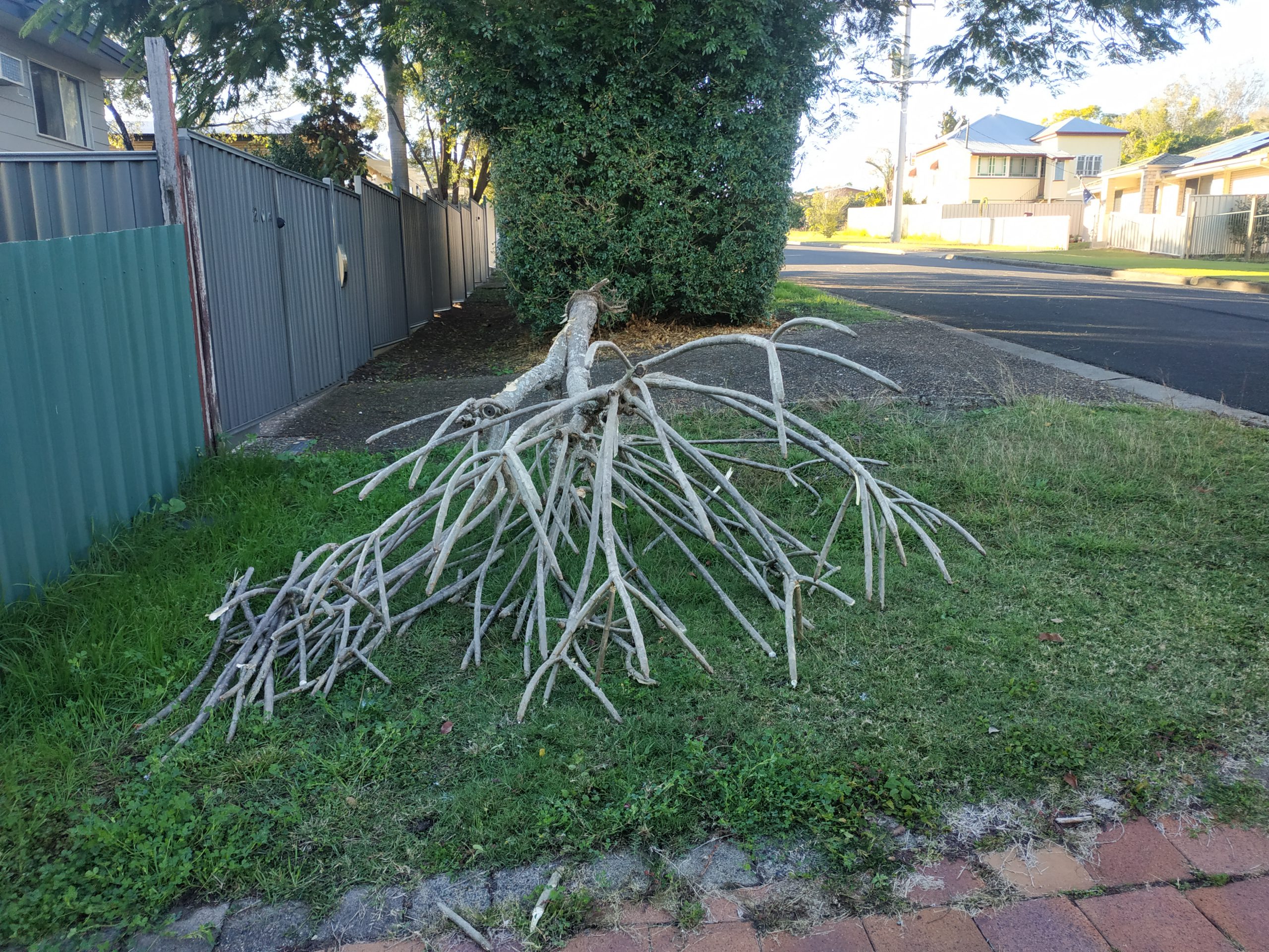 Yes he knocked down Mum’s tree, but I have replanted it in the back yard where I am hoping it will take root. And you never know, maybe the root system of the tree at the front of the house might sprout and live on. Either way I’ve decided not to take it any further, nothing will be gained from it.