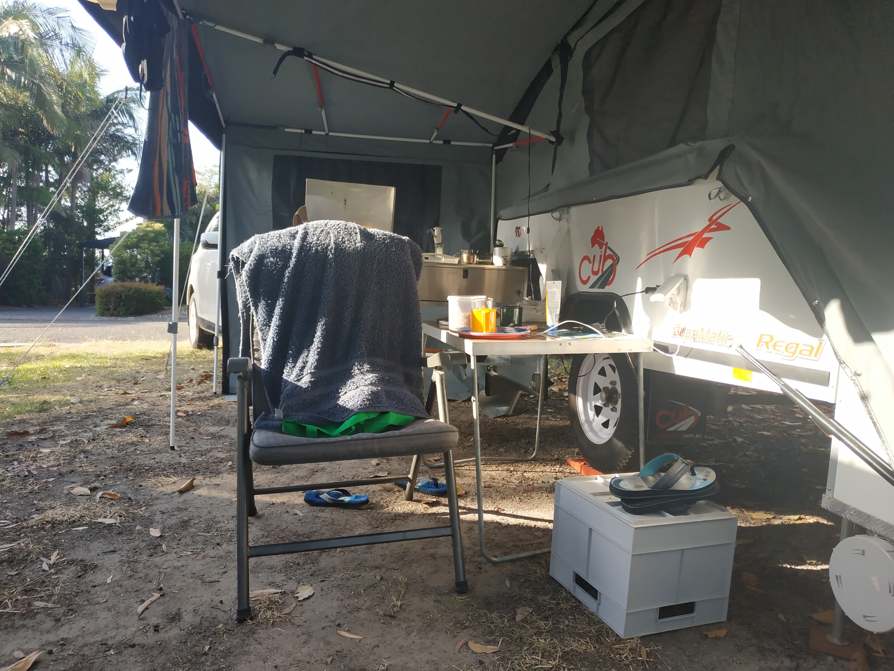 At breakfast the builder had a Red Bull drink and a meat pie to recover from the previous evening. You couldn’t get more Neanderthal if you tried. I also had to get him to turn down the TV because apparently all that drinking made him deaf.