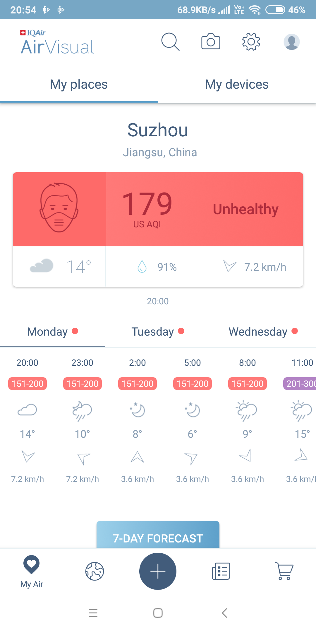 This morning Suzhou had an index of 195 and now as I go to bed in so glad that it’s so much better………