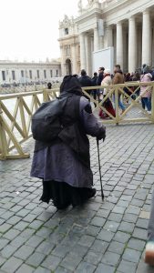 But then you get the other ones, the chancers and they are no more a beggar than I am. This old dear pictured below was a prime example. Her clothes were very clean but made to look old. She moved with such perfect grace in are shaking of the walking stick and crying “Grazie Grazie” and other things that I don’t understand. She knew how to work a crowd, but I noticed that she kept her face well covered, but her scarf slipped a little and you could see that the eyes behind this wee woman were very shiny and there was no sign of despair or sadness. The rhythm of her voice matched the rocking and shaking of her frail body, in my opinion she was full of shit and this was her day job and no doubt makes quite a bit of money by doing so. I should have got her on video to let you see this Oscar winning performance. And you know when they say” Grazie” their voices just break enough to make you think they are going to greet. There were about 3 old women working at St Peter’s but this one was the most active, the others were either sitting or begging beside a pillar. This guy above, well I don’t what he was on.