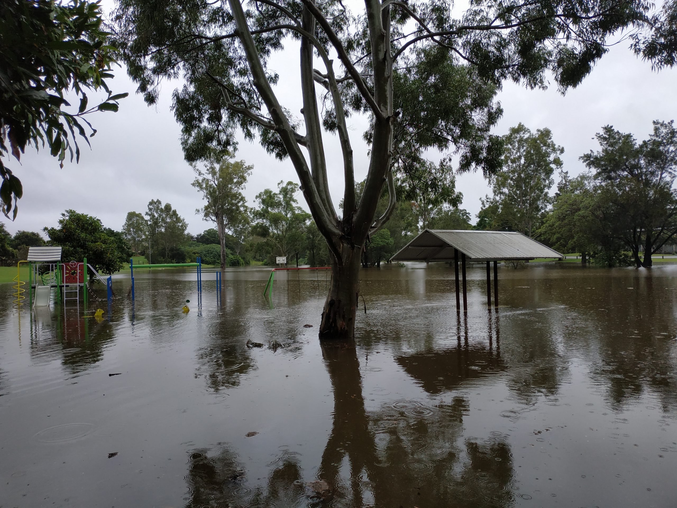 For the last two days we have had close to 200 mm each day. The ground is now saturated, so much so that across the street one of the neighbours trees has fallen over but thankfully has caused no damage. The park behind the house is flooded due to all the run off. At the bottom of the park where it backs onto the main road there is another park opposite and it has also flooded but I think that is due more to the river level rather than run off. If it rises another metre or more then it could get scary. The rain is set to continue for another day.