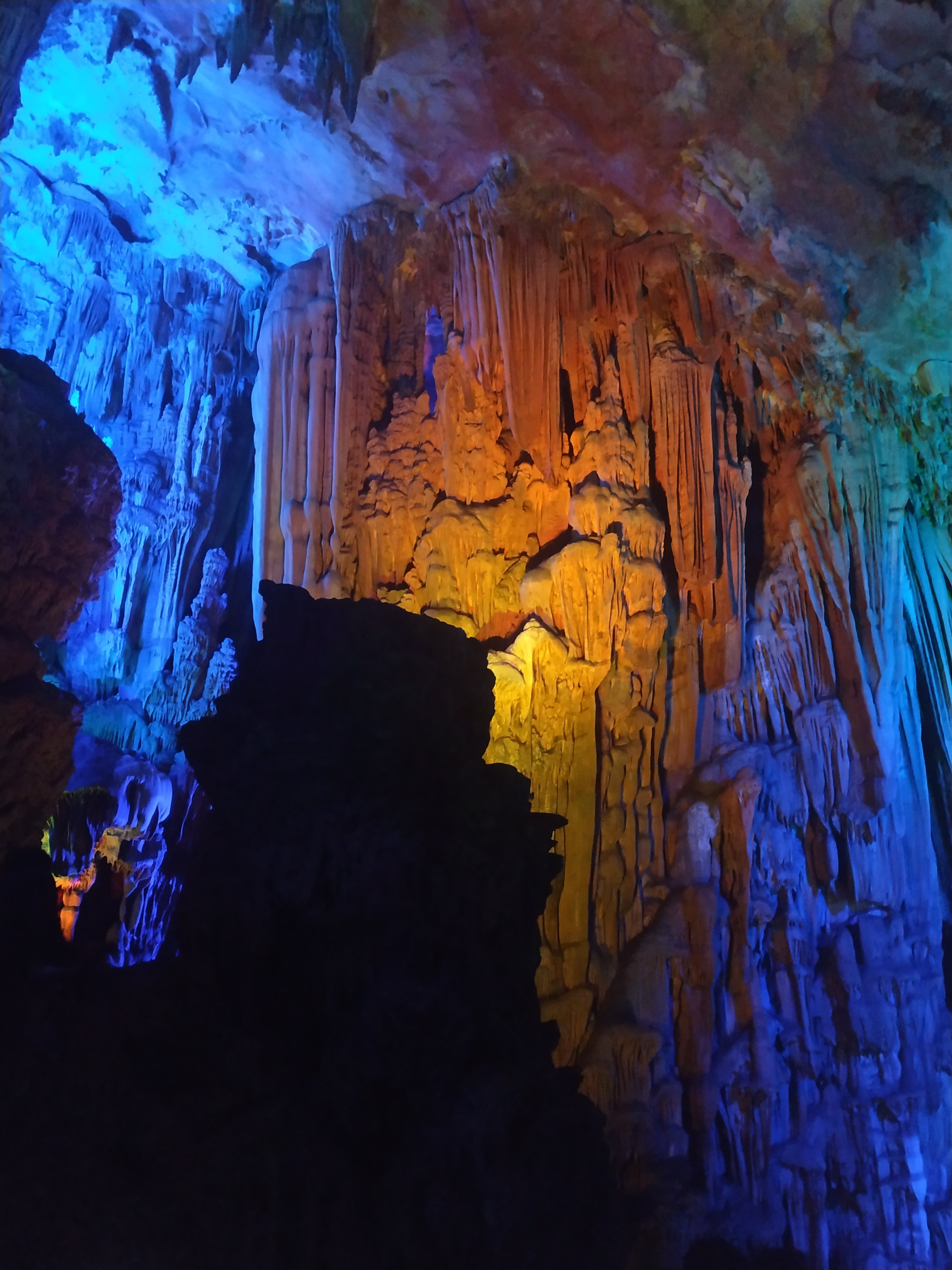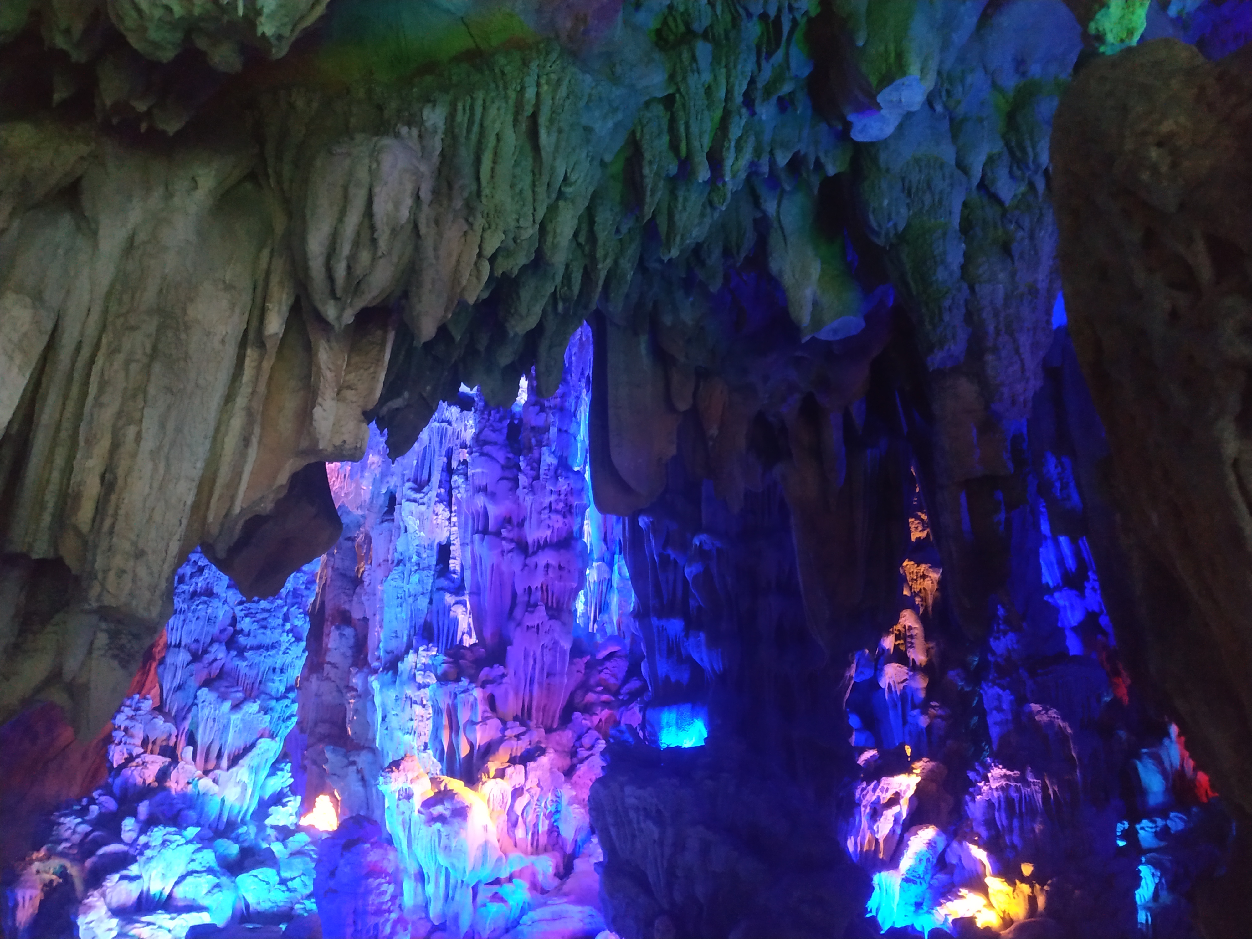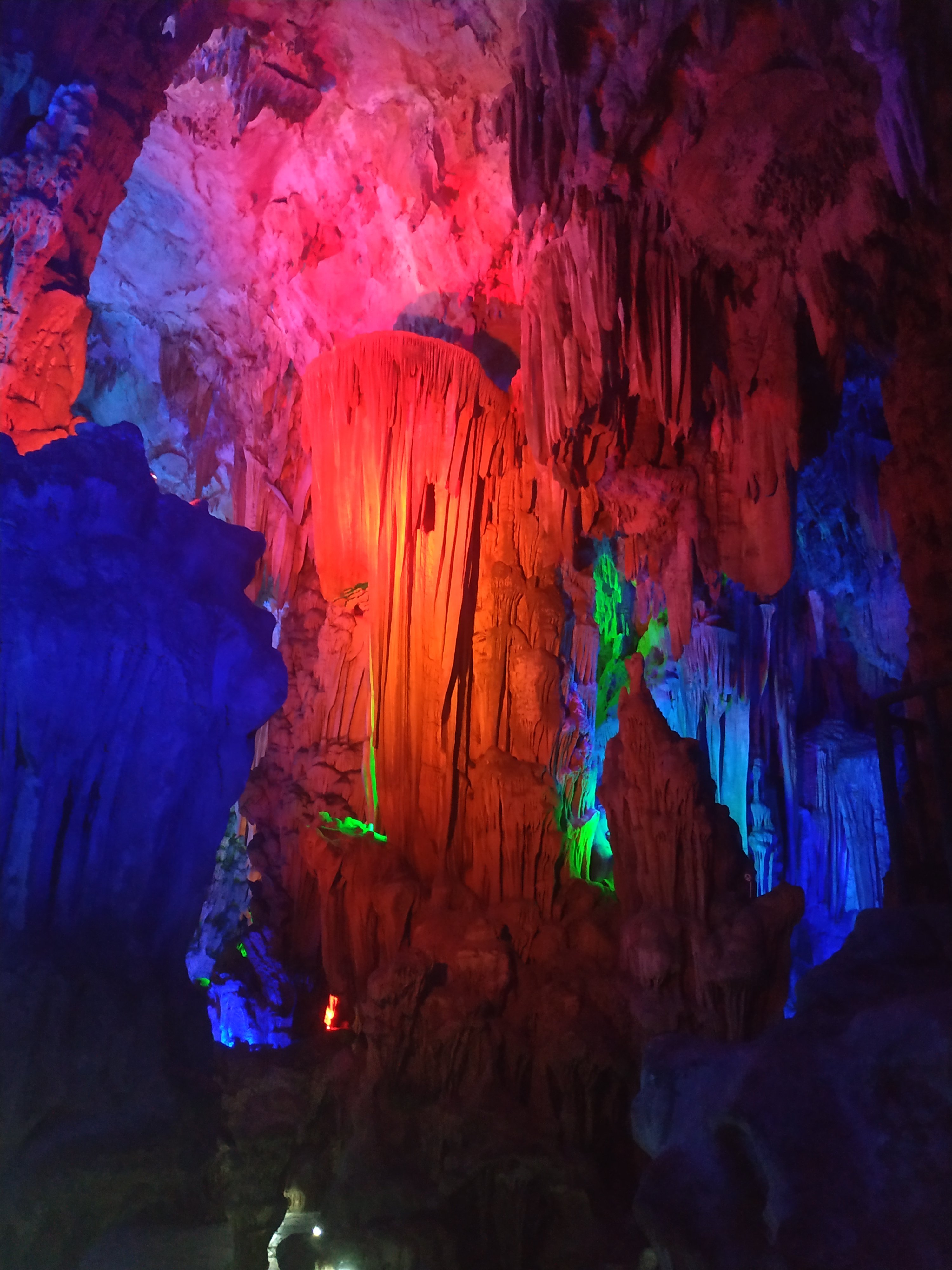 Today we went to see the Reed Flute Cave which was just a short bus trip from our hotel. It’s a limestone cave which has been illuminated by many coloured lights throughout to highlight the many wonderful formations.