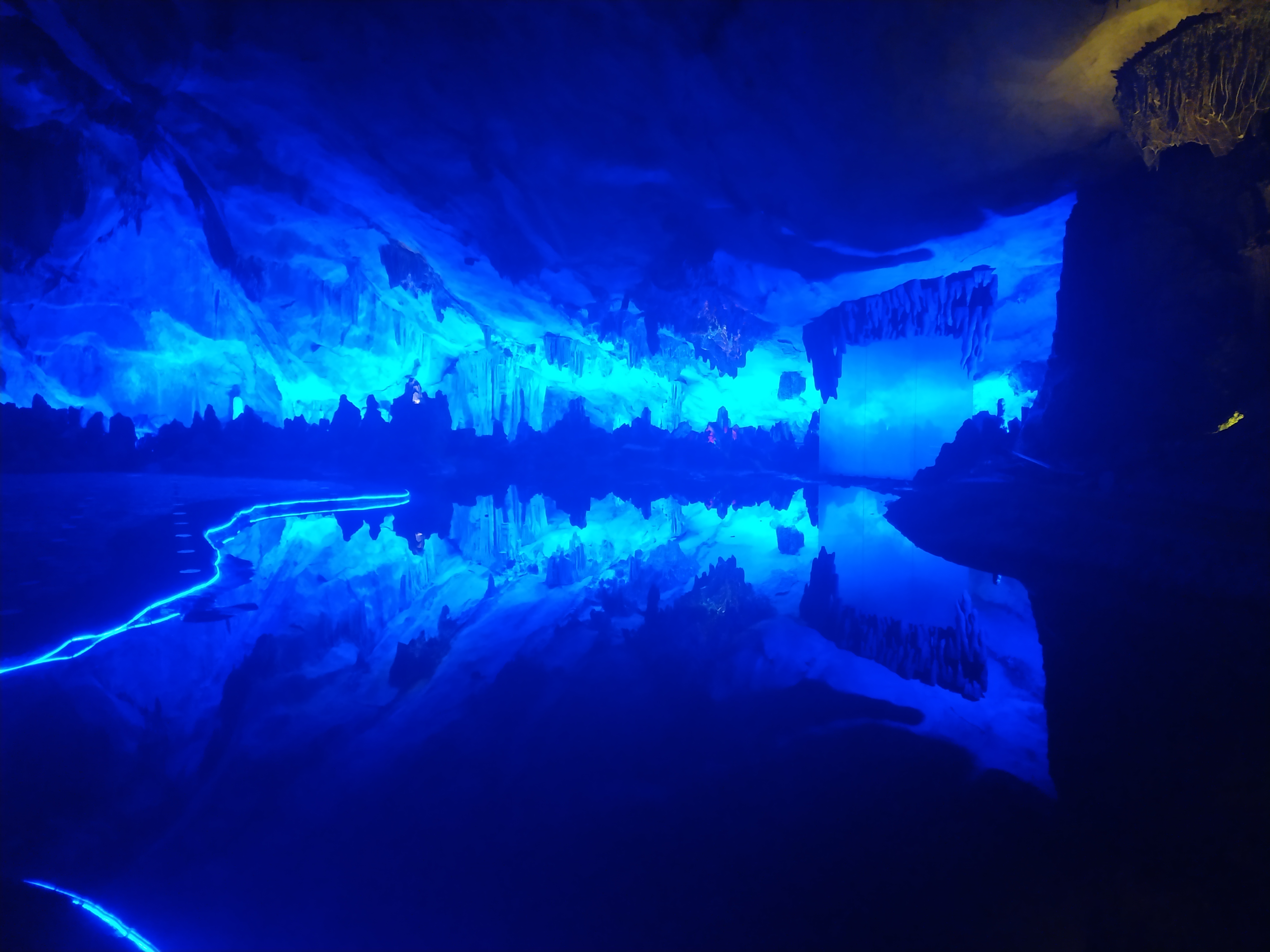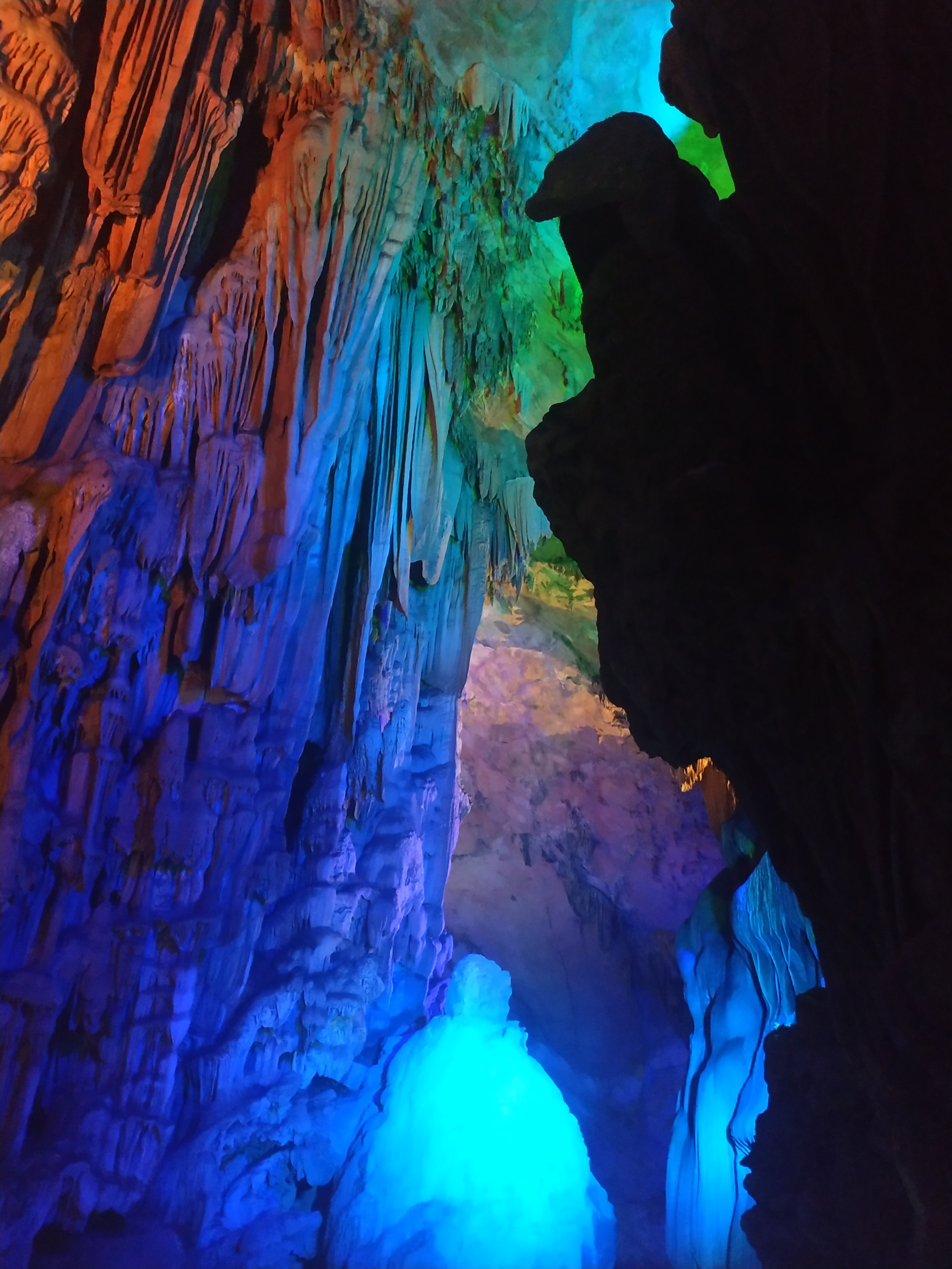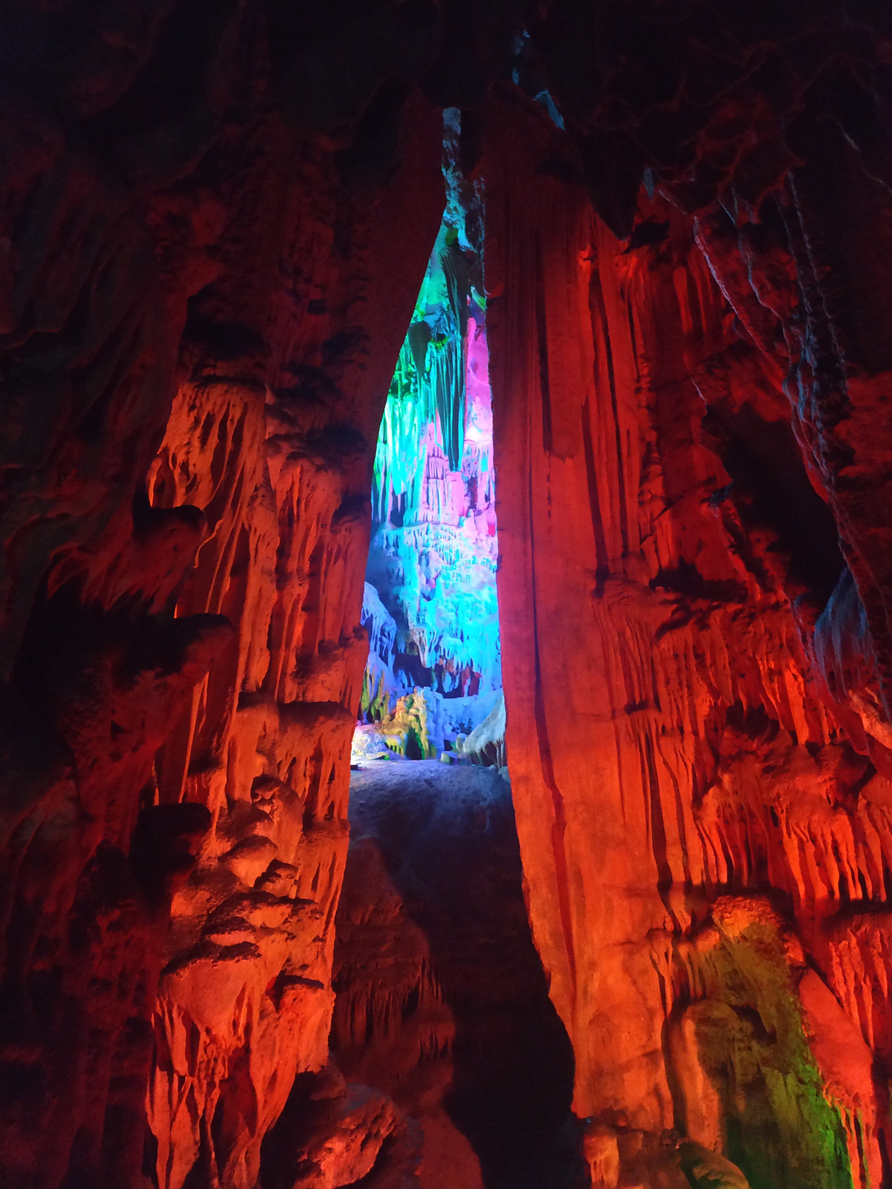 Today we went to see the Reed Flute Cave which was just a short bus trip from our hotel. It’s a limestone cave which has been illuminated by many coloured lights throughout to highlight the many wonderful formations.