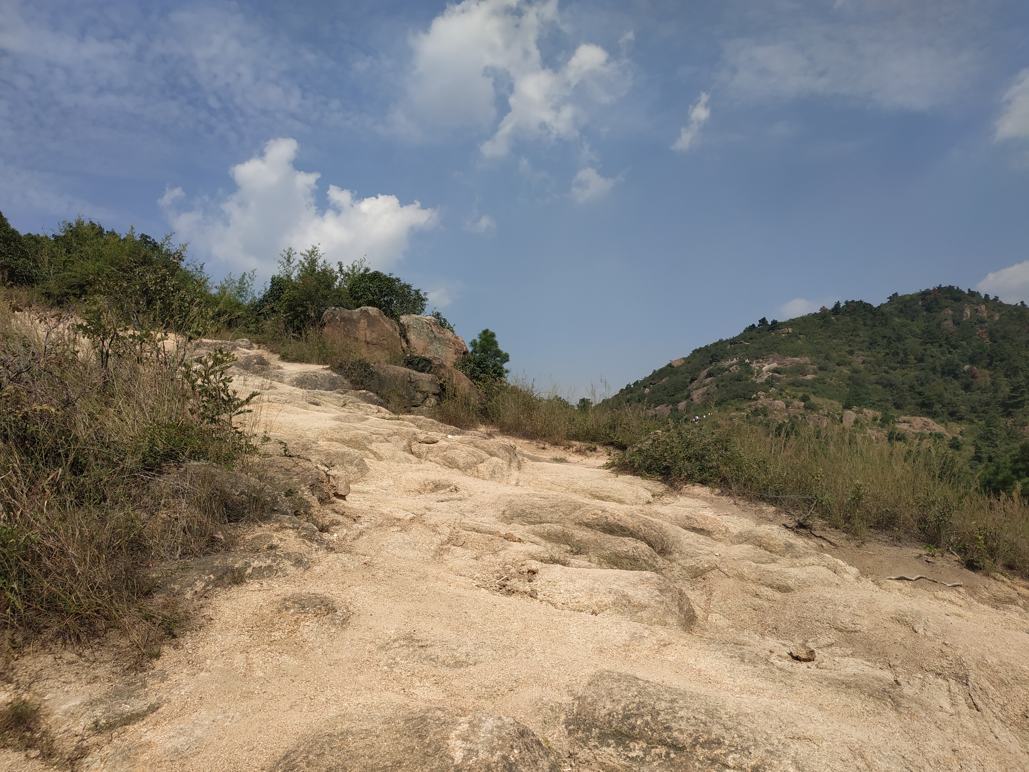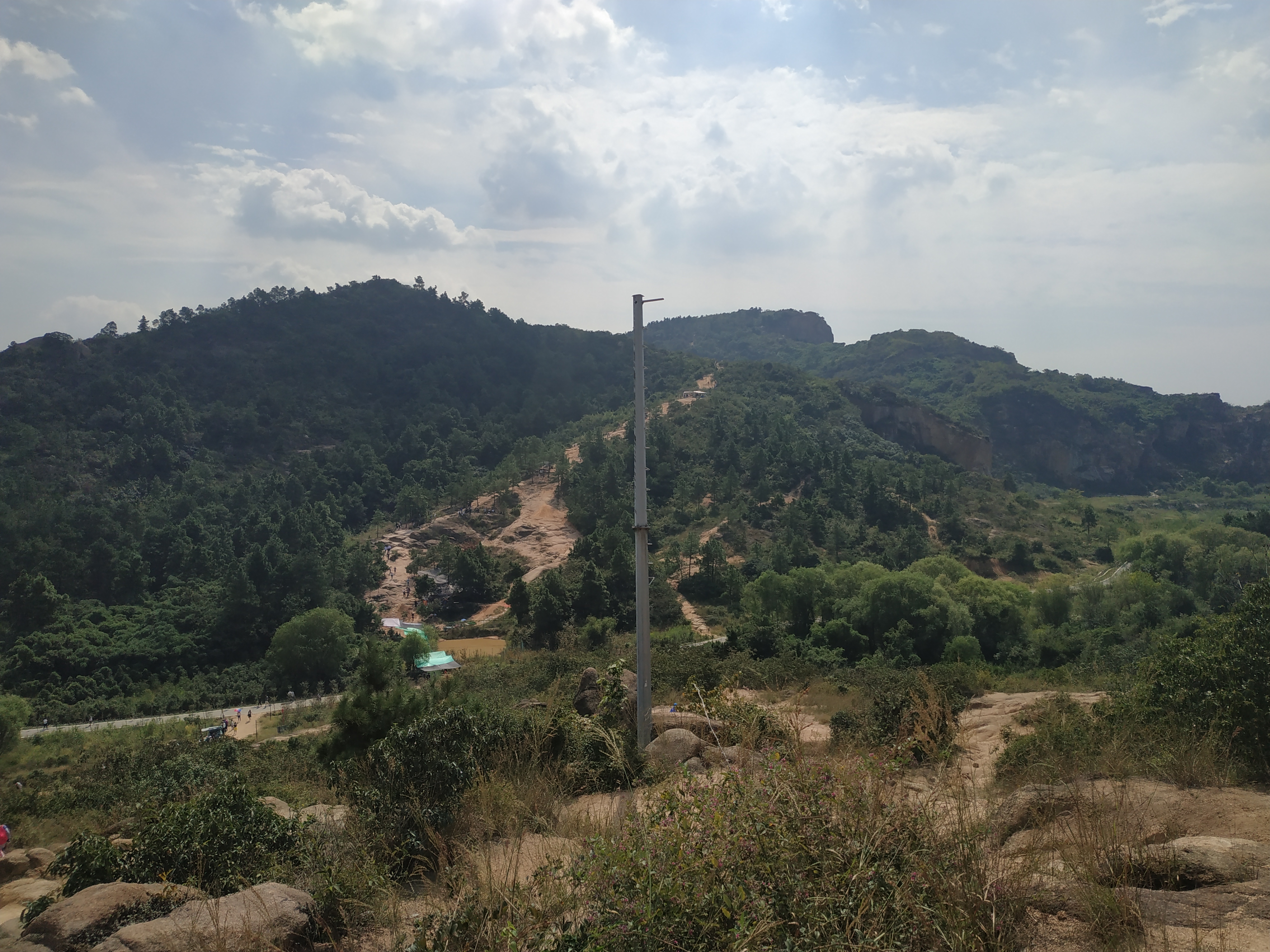Today there were many Chinese snaking up the mountain tracks and to be honest it was kinda stupid coming here at this time but you know the sun was shining and I fancied a stroll. Once you pass the temple complex you will then move onto the path through the brush and the first bit heads down the hill over mainly rocky terrain coupled with really slippy loose fine gravel which makes it interesting indeed. I’ve been in the first bit a few times and so I know how to navigate it quite well. There are always water and food stops but today they had multiplied at least 5 fold. Many have shade cloth and chairs to entice the weary travellers to stop a while and eat and maybe buy a walking stick. The Chinese love this, any excuse to stop and rest. Many don’t do this kind of physical exercise well and these resting areas are essential. I keep going I’m not interested in anything they have to offer.