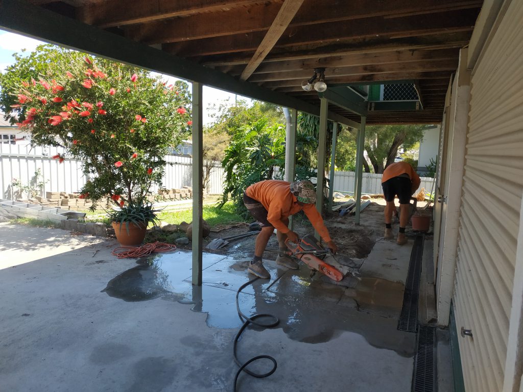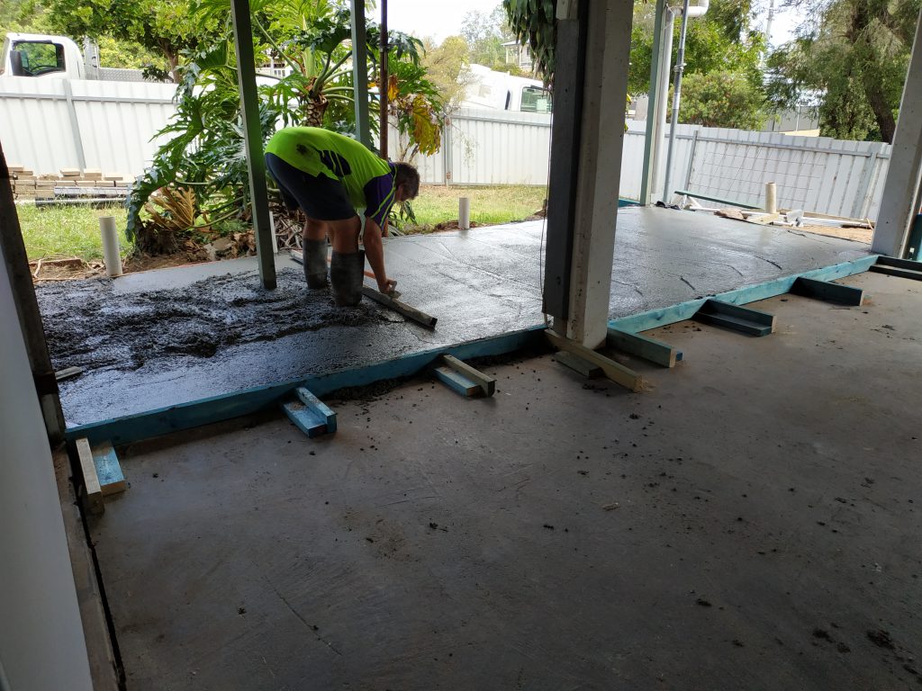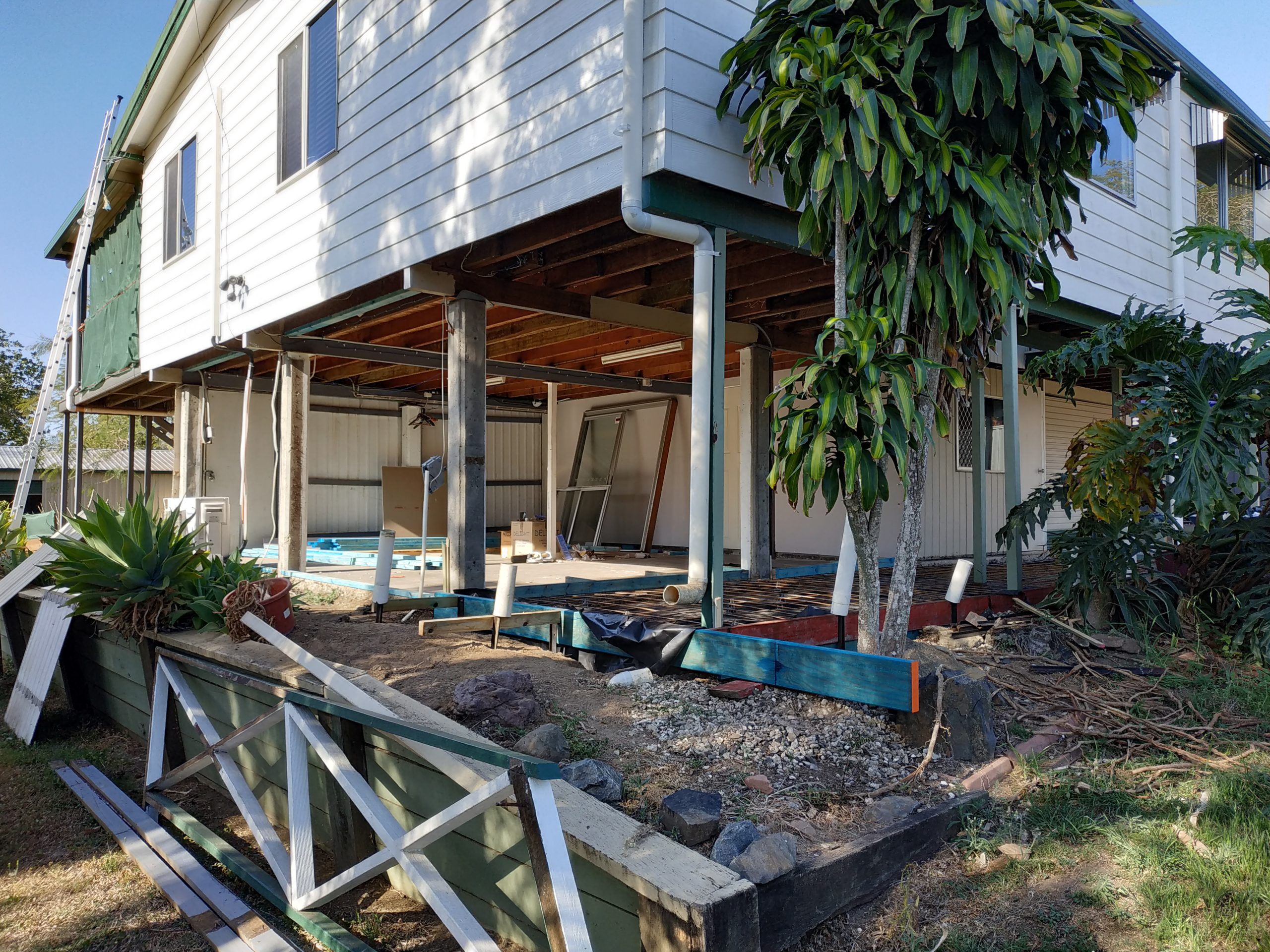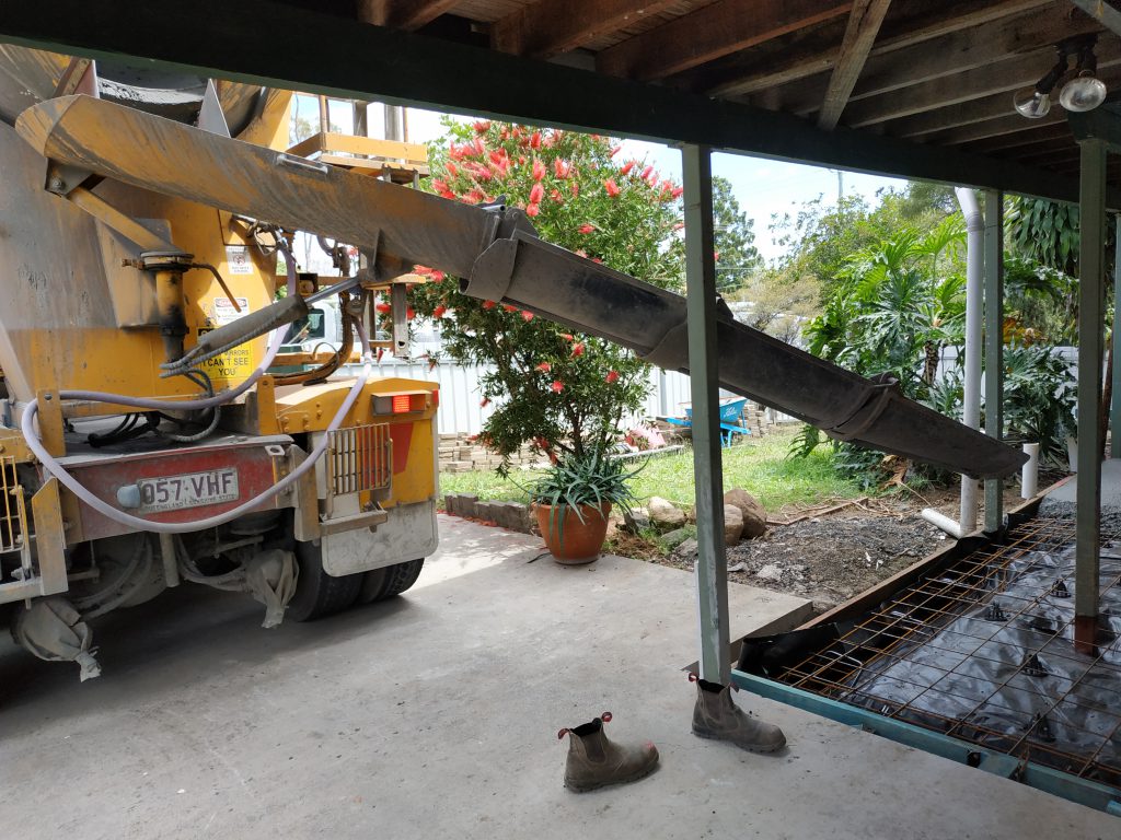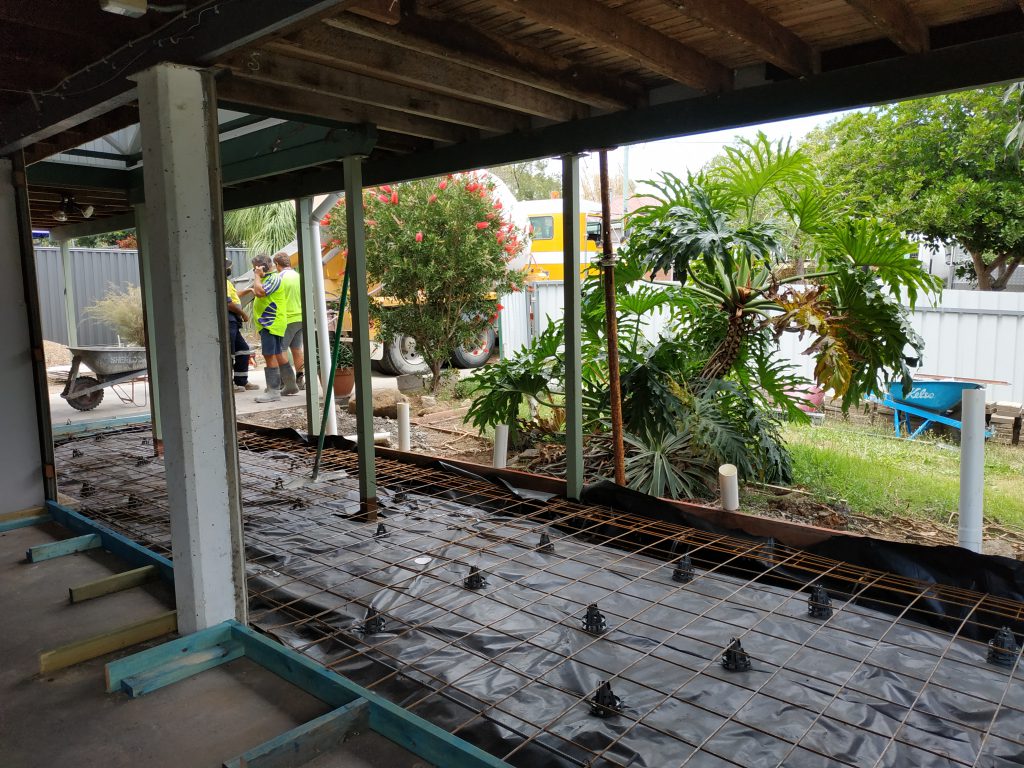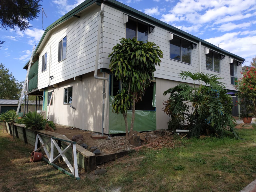 A new slab was laid and a large footing was constructed to once and for all secure the left front of the house. The house was raised up 50 mm on that corner to get it level and it’s good to finally see the floor and the skirting board once more coming together.