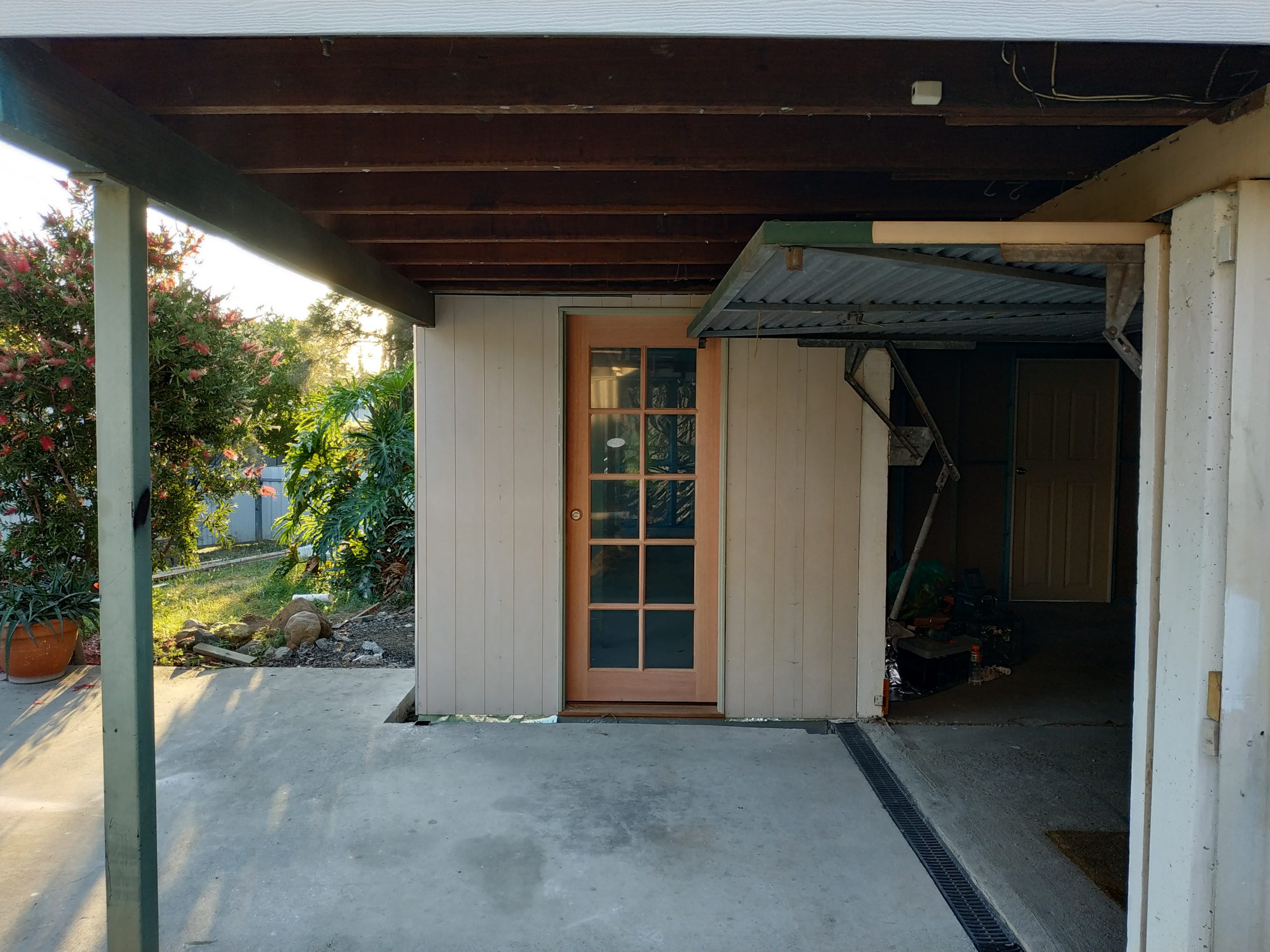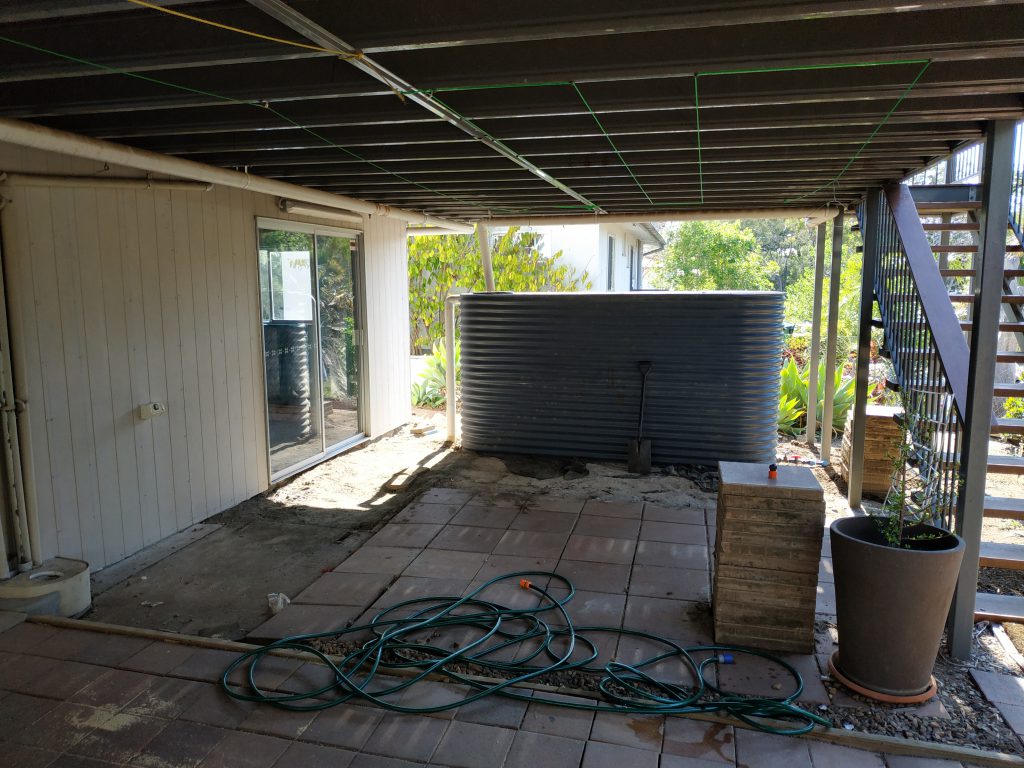 At the back of the house the water tank has been rotated through 90 degrees and by doing so it has created a sun block and made the underside of the deck cooler. The sliding glass door from the front of the house has been relocated to the rear which just makes such a difference. The pavers outside the door will have to be re-laid and I think I’ll start to tackle that over the weekend because they are predicting rain for the weekend and so I’ll try and finish up the drainage and a seal the window surrounds before then.