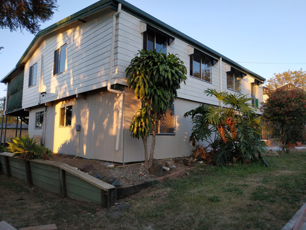 Doug and Rodney finished the work on the house on Friday the 16th, but the work is far from being complete. They have kindly done all the structural work, building the walls, laying the slab, jacking the house up to make it level and then making the place water tight.