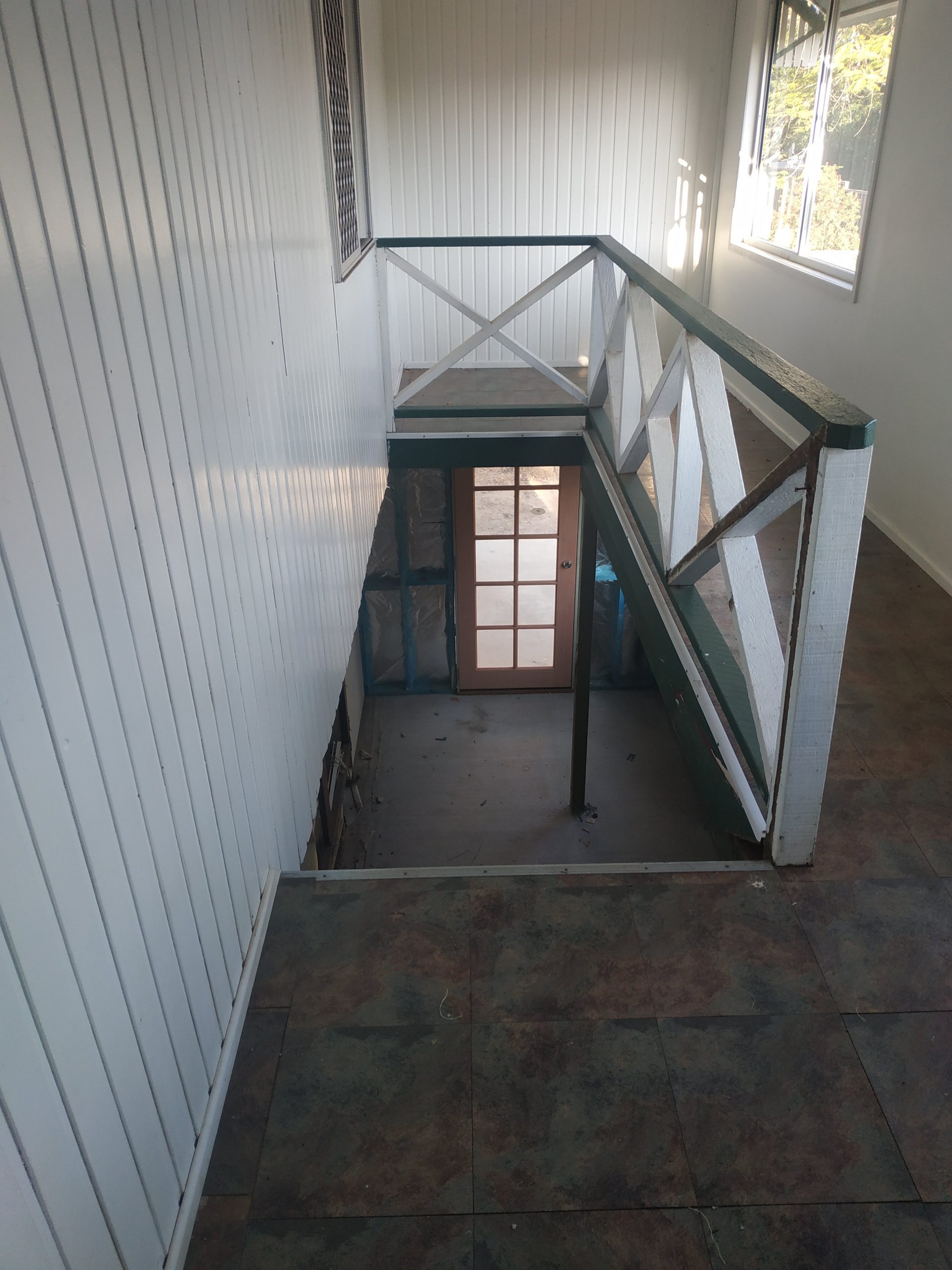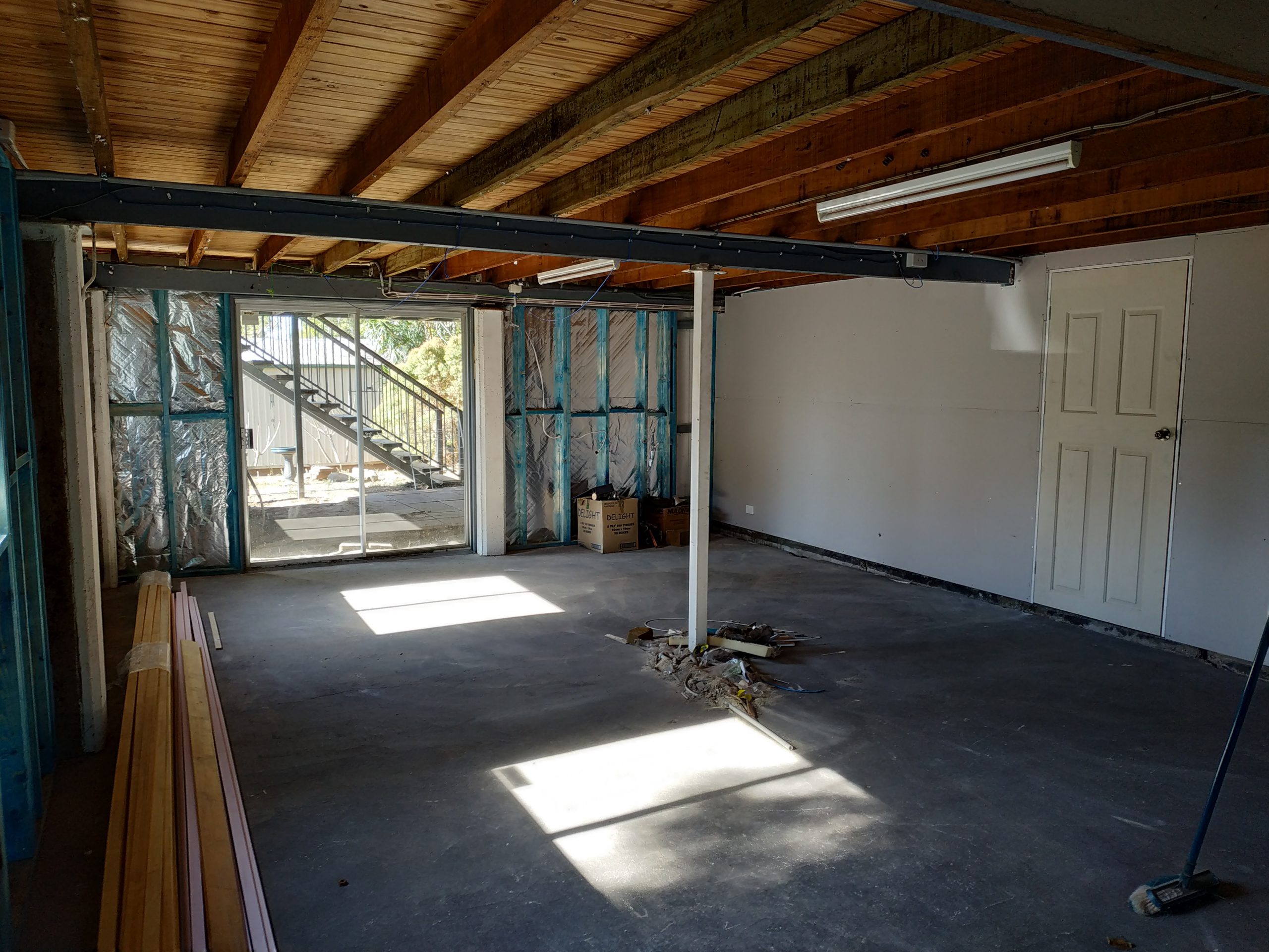 Now it’s my turn to finish to off and there is plenty for me to keep busy for a while. I need to get the insulation sometime this week so that I can then fix the gyprock, but today I focused on getting the stair treads ready for staining and painting. I have removed years of dirt and several layers of paint taking them back to bare timber. I have left the underside slightly unfinished because I will paint that part black and then use a natural would gloss to cover and protect the timber. I’m hoping to have them ready to be put back on by the end of the week.